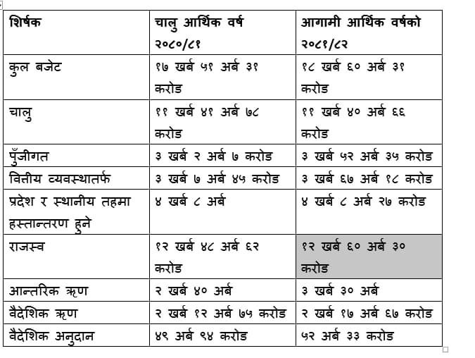 आगामी आर्थिक वर्षका लागि १८ खर्ब ६० अर्बको बजेट